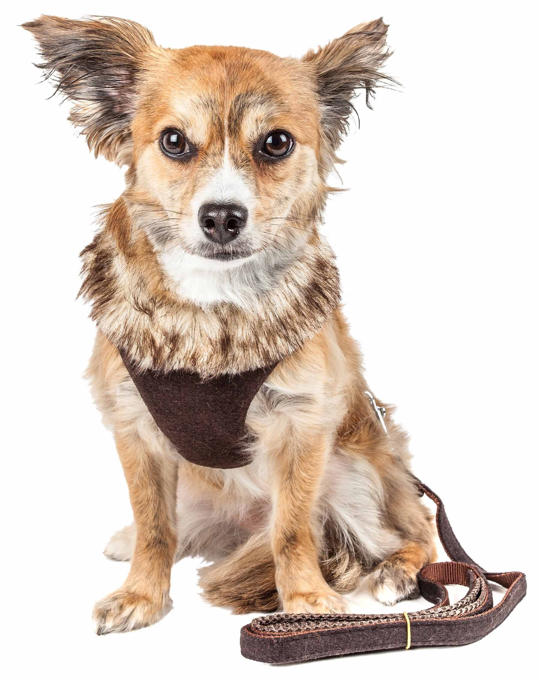 Pet Life Luxe 'Furracious' 2-In-1 Mesh Reversed Adjustable Dog Harness-Leash W/ Removable Fur Collar